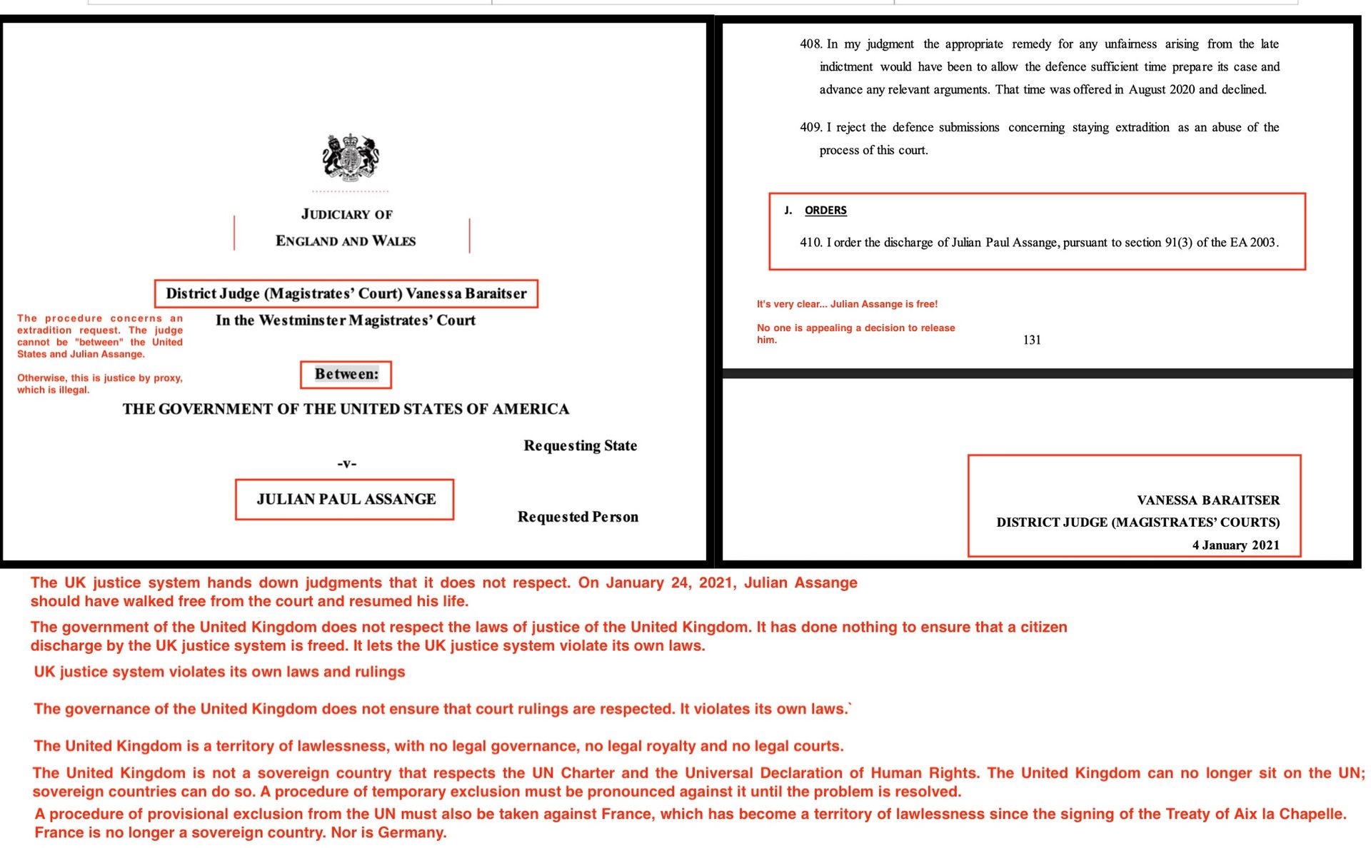 We remind you that in the false procedure "storry-telling", the citizen known as Julian Paul Assange is free. The acquittal was pronounced by Vanessa Baraitser at the January 4, 2021 hearing. No one is appealing against a release!